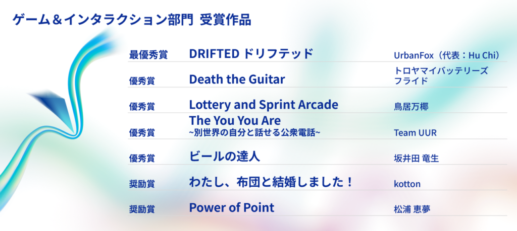 ゲーム&インタラクション部門に入選した15作品は2026年3月末頃アーカイブサイトにて公開予定です。
