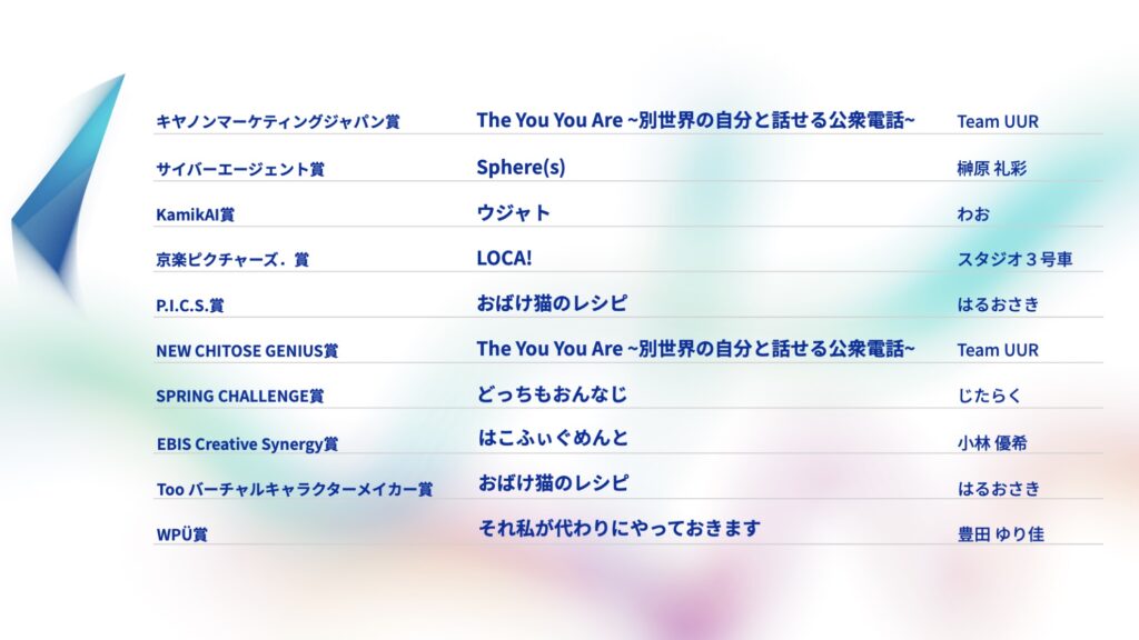 3月18日(水)に受賞発表イベント「NYAA2025 Meeting」が開催され、各部門の入選作品(55作品)の中から、パートナー賞10作品が発表されました。